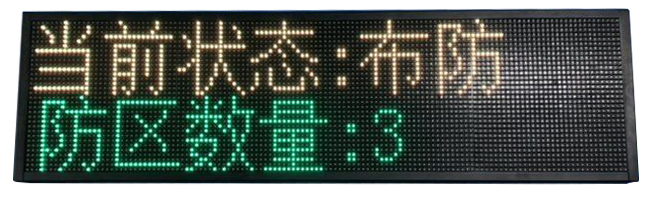 功能描述:1.LED電子屏 F3.75 雙色顯示,豪華大氣,直觀,适合所有場(chǎng)所。2.兩行字體顯示,可以顯示在線防區數量,公司LOGO 當前狀态,報(bào)警防區3.安裝方式:挂裝......